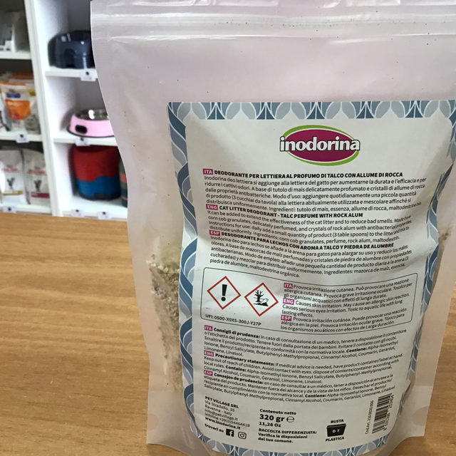 Inodorina DEO lettiera gatto al profumo di talco con allume di rocca 320 g 8031398253404
